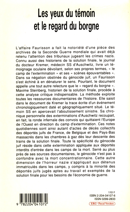 «L’extermination totale» — Les 100 % de l’officier S.S. — En raison du secret — L’«anéantissement» revu et corrigé — L’«action spéciale» du témoin oculaire — Le «fait capital»- Le chiffre du secret