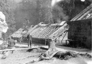 Scenes from the life of Jewish forced laborers: part of the camp (Riptinyec, 1940).