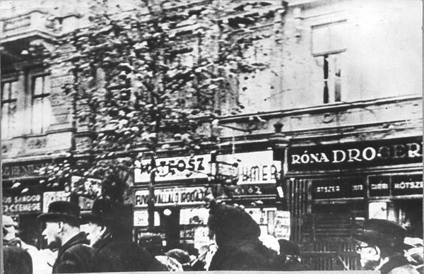 Jews being marched on the József ring (József körút) to the ghetto of Pest.
