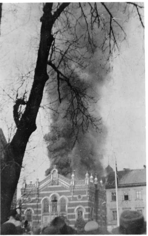 The synagogue of Tarnopol which was set on fire by the Nazis.