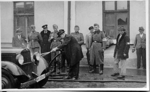 A rabbi is forced to wash a car (Novy Sad, 1942).