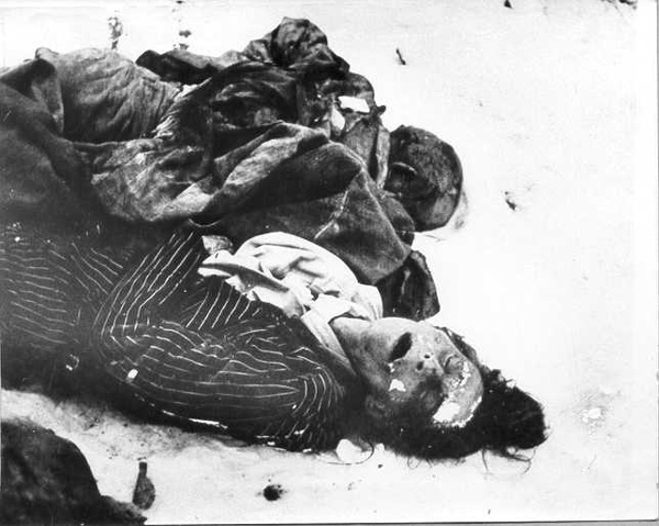 Jewish victims of Arrow Cross men. A mass of corpses in Budapest.