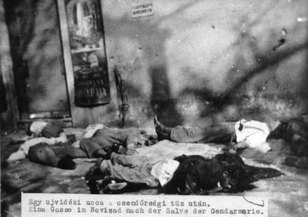 Novy Sad, a street after shooting committed by the gendarmerie.