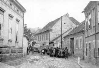 March of deportees on the streets of Kôszeg in 1944.