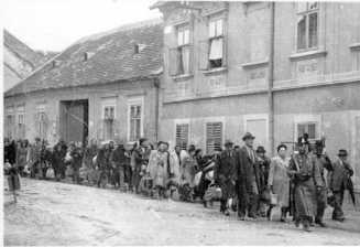 March of deportees on the streets of Kôszeg in 1944.