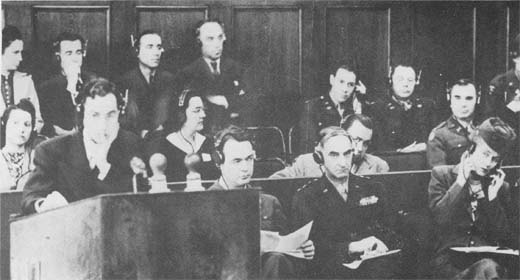 General Telford Taylor, U.S. Chief of Counsel. On the left at rostrum is Mr.