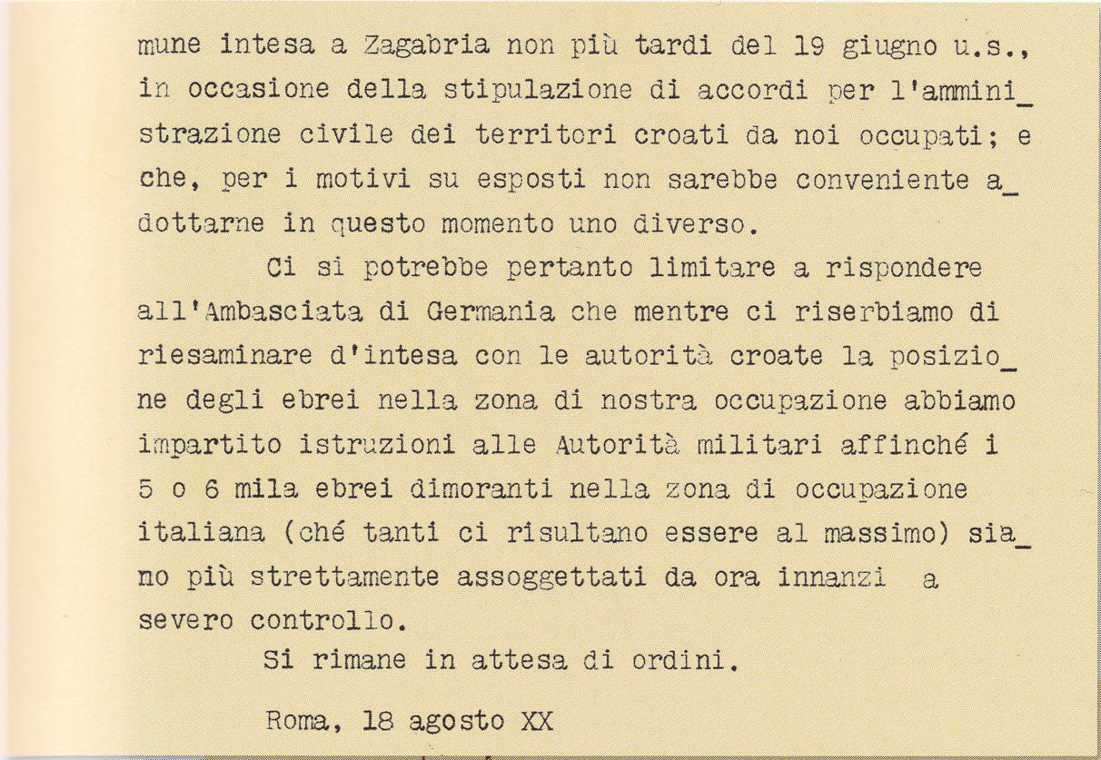237. Luca Pietromarchi, «Estratti del diario private» in Joseph Rochlitz, The Righteous Enemy, The Italians and Jews in Occupied Europe, Bologna, 1984, p. 9; cité par Jonathan Steinberg, All or Nothing: The Axis and the Holocaust, 1941-1943, Routledge, 1990, p. 93.